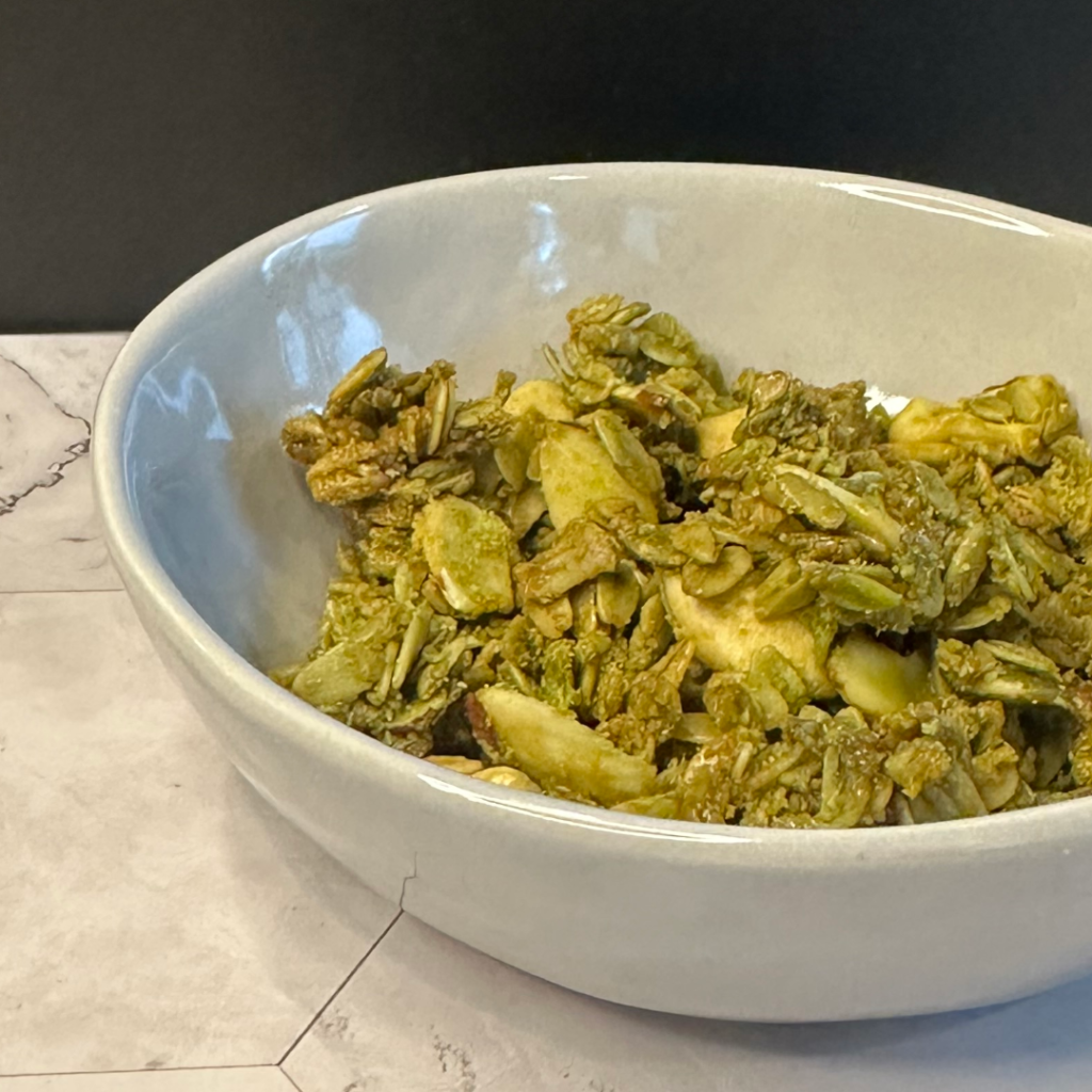 Matcha 抹茶 is shade-grown, finely stone-ground green tea, prized for its delicate flavor. A complex blend of umami, mild bitterness and savoriness, matcha is unique to Japan. Traditionally, matcha was enjoyed only as tea, but in modern times matcha stars in many things from lattes and ice cream to cookies, cakes, and now, Wanola Granola!