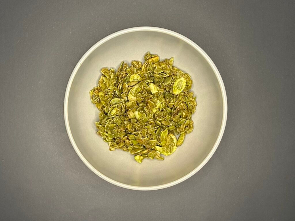 Wanola Granola brings together the savory umami of Japanese stone-ground matcha and the subtle sweetness of kuromitsu, specially formulated and made in-house for granola, to achieve an exquisite flavor and unique texture.