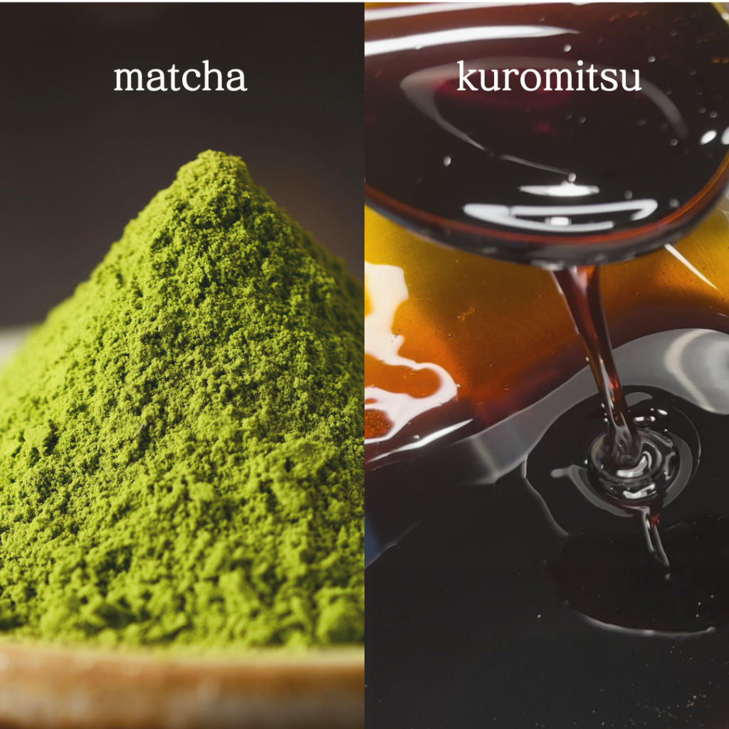 Kuromitsu 黒蜜 is a traditional sweetener used in Japanese confectionery and has been beloved for hundreds of years. It gets its name kuro 黒 (black) mitsu 蜜 (honey, nectar) from its dark color that also embodies its distinct flavor: a rich but gentle, complex mixture of molasses and hints of caramel.